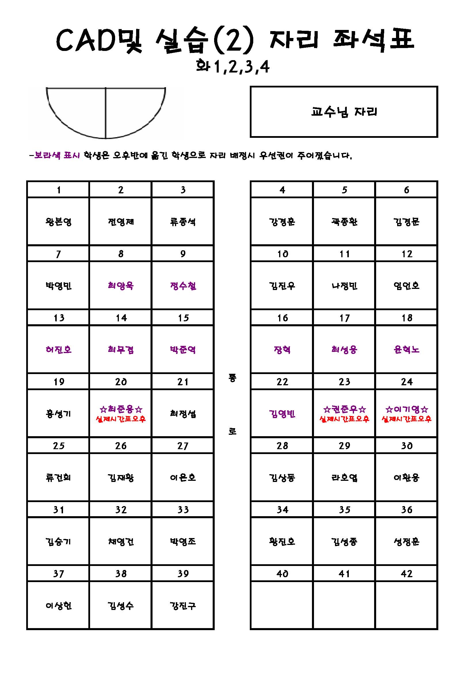 CAD및 실습(2) 자리배정 ☆지정석에 앞으로 앉을것☆